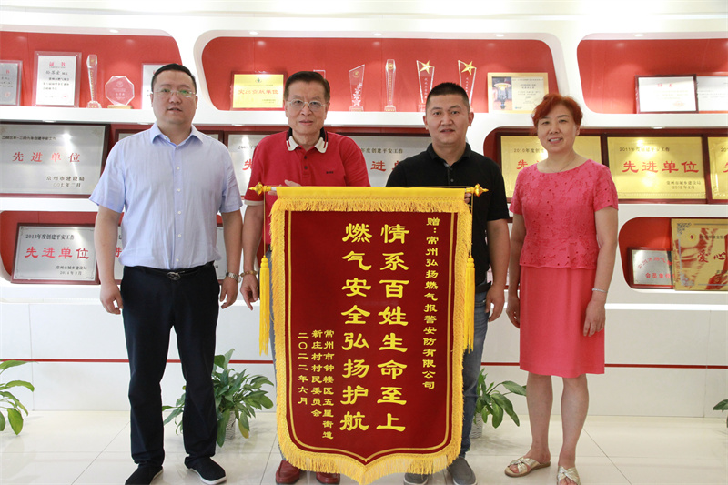 2022年6月9日上午,常州弘揚燃氣報警安防有限公司董事長孫蘇宏先生收到鐘樓區(qū)五星街道新莊村委陸強書記送來的一面“情系百姓 生命 燃氣安全 弘揚護航”的錦旗,對弘揚企業(yè)在5月15日的扶殘助殘獻愛心活動以及6月安全生產(chǎn)月“燃氣安全進社區(qū)”活動中的愛心捐贈和突出貢獻表示感謝。