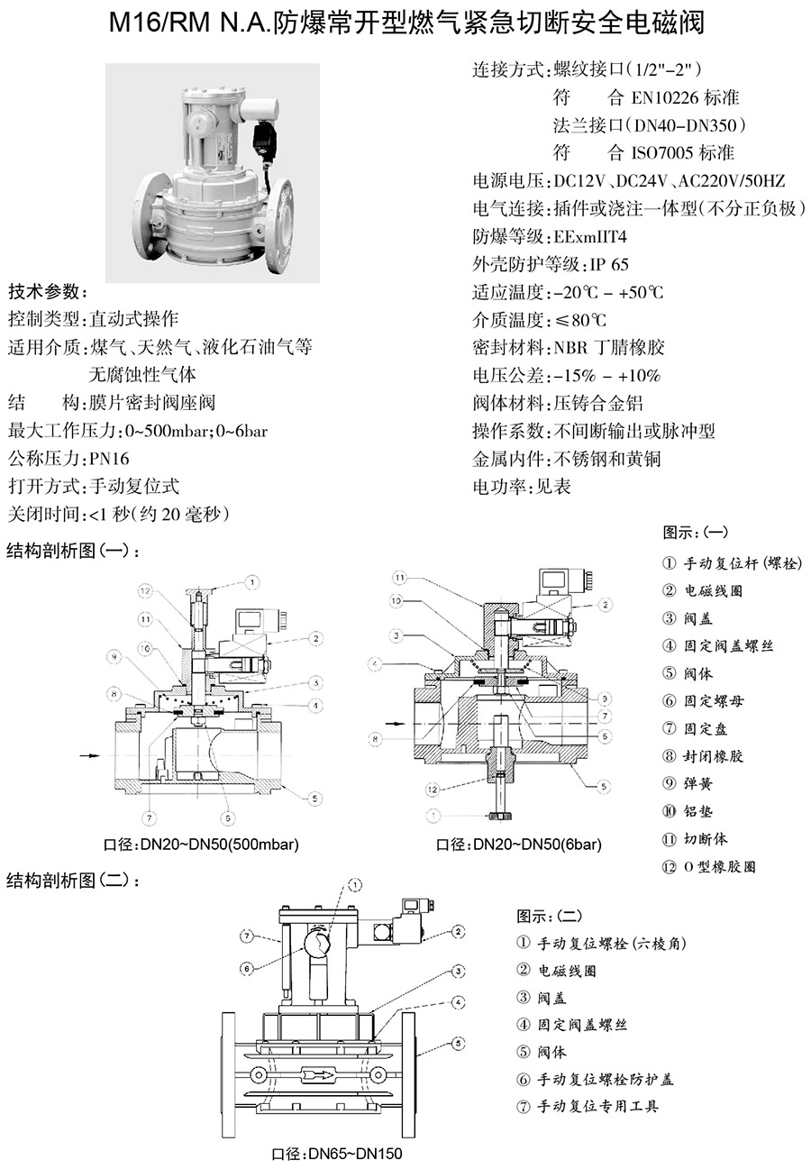 M16/RM N.A.N.C.防爆燃氣緊急切斷安全電磁閥
